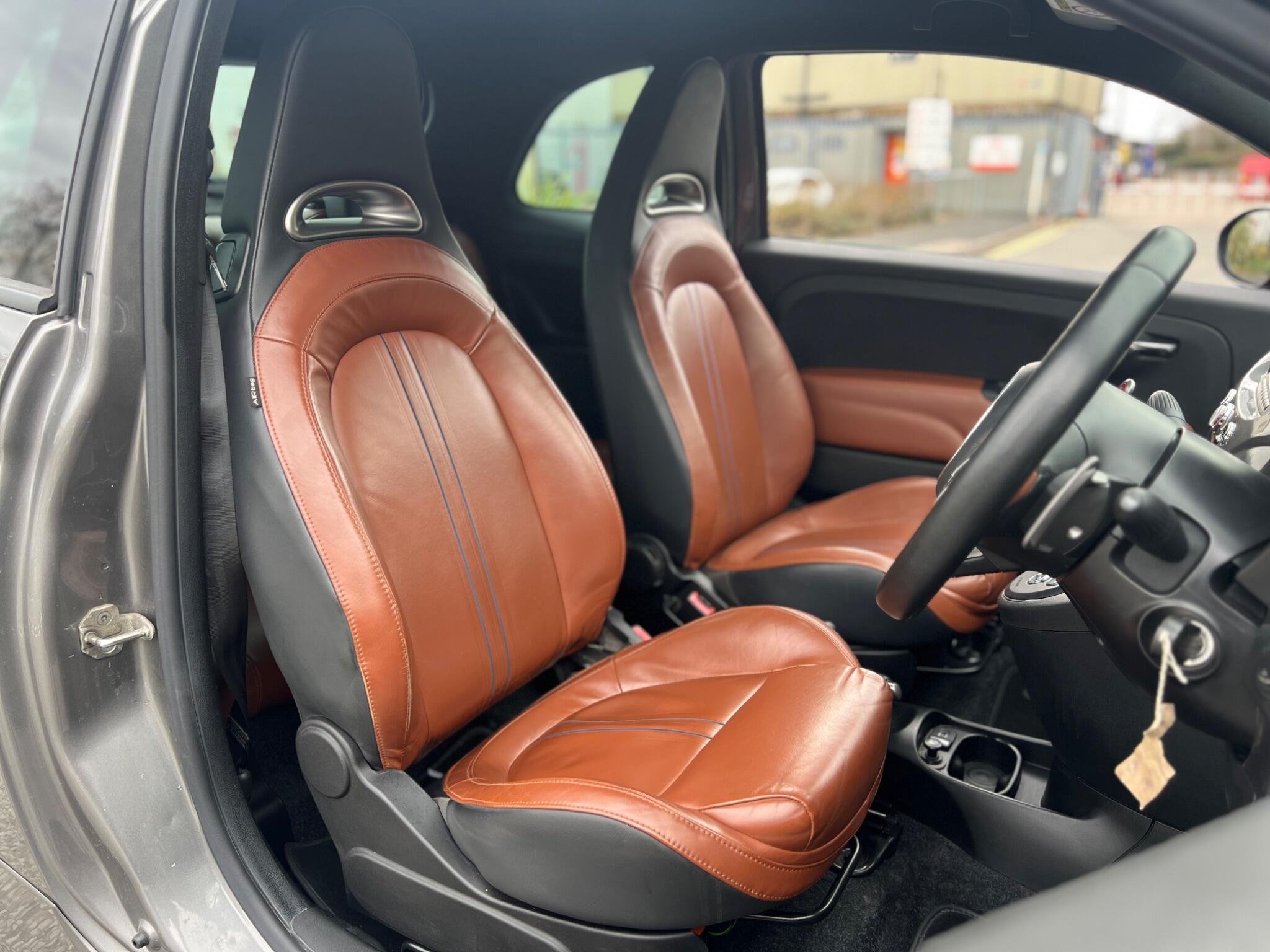2015 Abarth 500 1.4 T-Jet Auto Euro 5 3dr in Grey. Only 38000 warranted miles on the clock. Car comes with a 12 Month Warranty!!! MOT till 18th April 2026. Only 3 previous owners from new. Full Service History Available: 9 Services 3 Main Dealer. New clutch and slave cylinder recently fitted. New Timing belt and water pump fitted at 35k in 2024. Car starts and drives well with no mechanical faults. Full V5 Available. Good spec including: Leather Seats, Leather Steering Wheel, CD/Radio/AUX/USB, Bluetooth, AC/Climate Control, Electric Windows, Electric Mirrors, Alloy Wheels, Cruise Control, Central Locking and many more. Nationwide Delivery Available. P/X Welcome. HPI Clear. ULEZ Compliant. Any questions don't hesitate to contact us on 07443456706. Whatsapp available as well