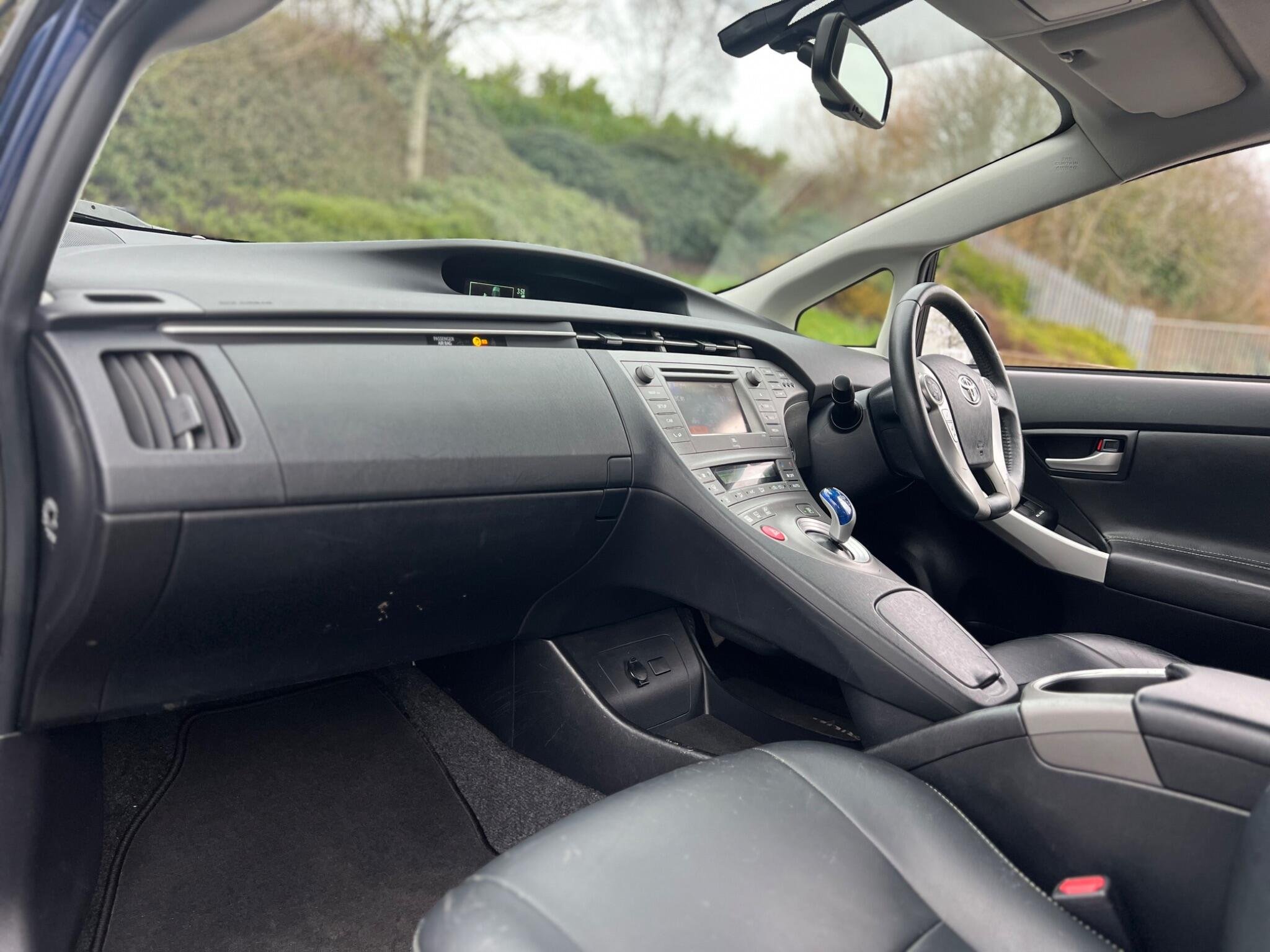 2014 Toyota Prius 1.8 VVT-h T Spirit CVT Euro 5 (s/s) 5dr in Blue. 73000 warranted miles on the clock. Car comes with a 12 Month Warranty!!! MOT till 11th January 2027. Only 1 owner from new. Service History Available. Car starts and drives well with no mechanical faults. Full V5 Available. Good spec including: Sat Nav, Leather Seats, Heads Up Display, Leather Steering Wheel, CD/Radio/AUX/USB, Bluetooth, AC/Climate Control, Electric Windows, Electric Mirrors, Alloy Wheels, Privacy Glass, Central Locking and many more. Nationwide Delivery Available. P/X Welcome. HPI Clear. 2 Keys. ULEZ Compliant. Any questions don't hesitate to contact us on 07443456706. Whatsapp available as well